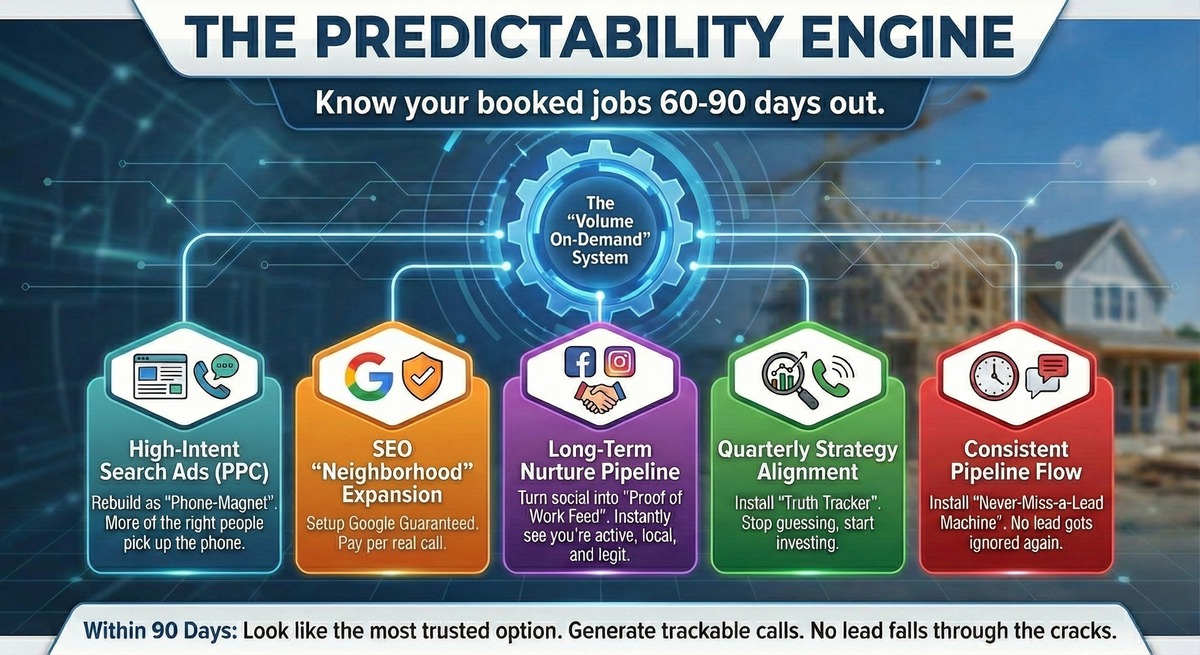 Phase 1 was about fixing your foundation (Website, Google Business Profile, LSA) to capture the traffic you already had. Phase 2 (Predictability) is about buying new traffic. This is where we aggressively go out and hunt for customers using Google Search Ads and expanded SEO content. Phase 1 is "Defense." Phase 2 is "Offense."