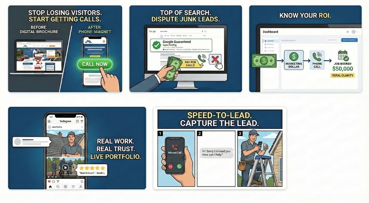 The Shift: We don't build digital brochures. We build high-performance landing pages designed to do one thing: get the homeowner to push the "Call Now" button.