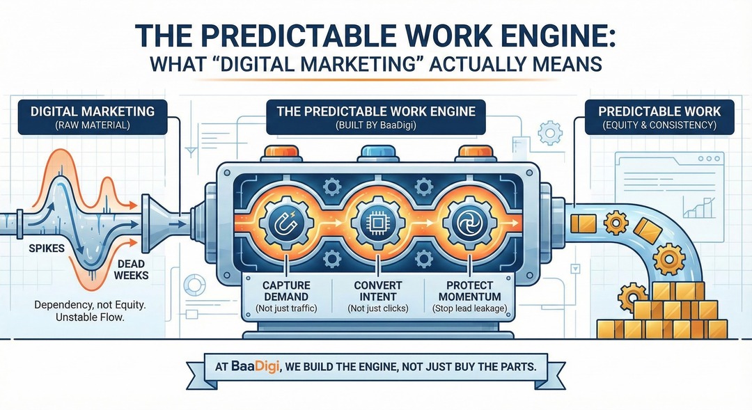 That is why "doing digital marketing" alone never creates predictable work. It just creates noise.