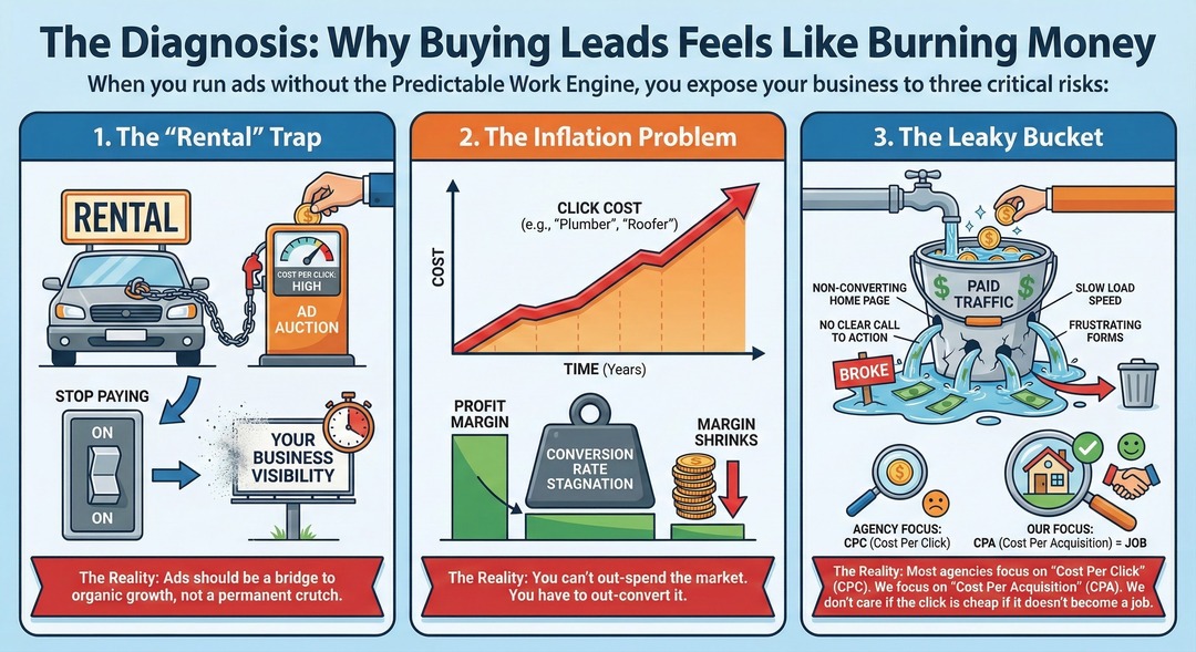 When you run ads without the Predictable Work Engine, you expose your business to three critical risks: